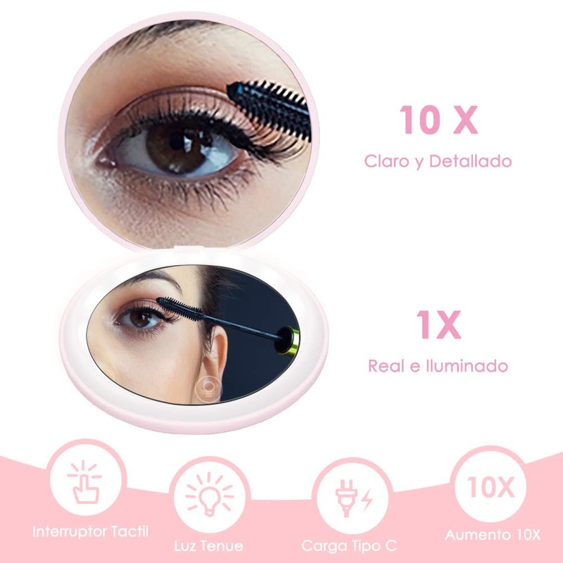 Un aumento de -10x es ideal para ver en detalle, maquillarse los ojos o depilarse con pinzas.