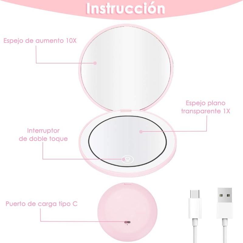 • 【Espejo LED de Doble Cara Recargable】--- El espejo compacto de doble cara con luz LED es lo último en diseño. A diferencia de los mini espejos LED tradicionales que funcionan con pilas, este espejo de maquillaje es recargable mediante un cable de datos de tipo C (incluido). Hasta 6500K de brillo le permite brillar en todas las direcciones, y su resplandor le ayuda a ver los detalles y crear maquillaje sutil incluso en lugares oscuros.