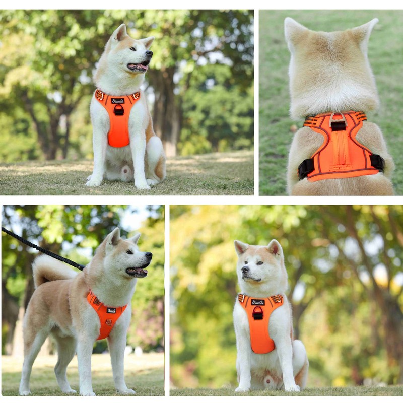 Lukovee No Pull Dog Harness, No Choke Pet Harness with 2 Leash Clips and Easy Control Vertical Handle, Adjustable Soft Padded Dog Vest for Small, Medium and Large Dogs (Medium, Orange)