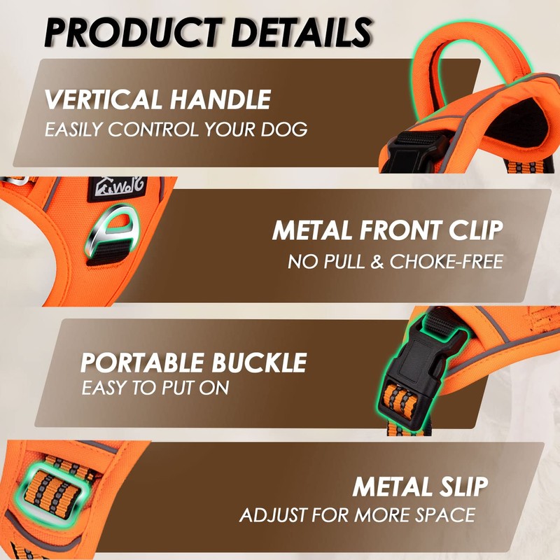 - 【HIGH-END MATERIAL】--- Made of 100% polyester, scratch-resistant Oxford mesh fabric and soft sponge, our dog vest harness is lightweight, breathable, durable and skin-friendly. This easy walk harness will protect the spinal nerves of the dog and provide all day comfort for your pet friend.