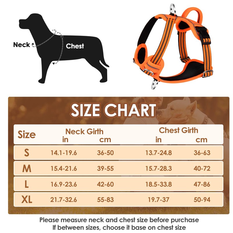 - 【MUCH SAFER & MORE COMFORTABLE】--- The soft padded, top vertical handle is ergonomic, easy to lift, and comfortable to provide extra control when your dog is too active or tends to pull. Well sewn reflective material in the straps won’t crack easily and can durably ensure high visibility and safety when walking at night.