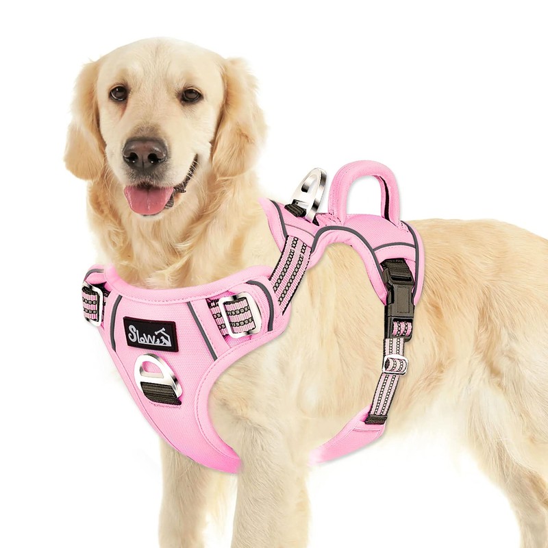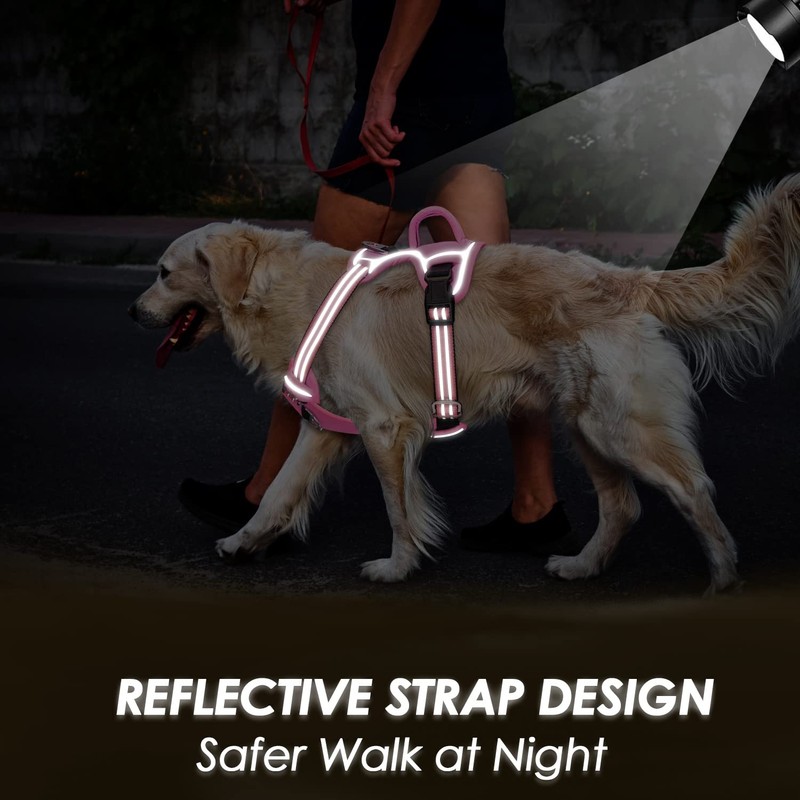 Lukovee No Pull Dog Harness, No Choke Pet Harness with 2 Leash Clips and Easy Control Vertical Handle, Adjustable Soft Padded Dog Vest for Small, Medium and Large Dogs (X-Large, Pink)