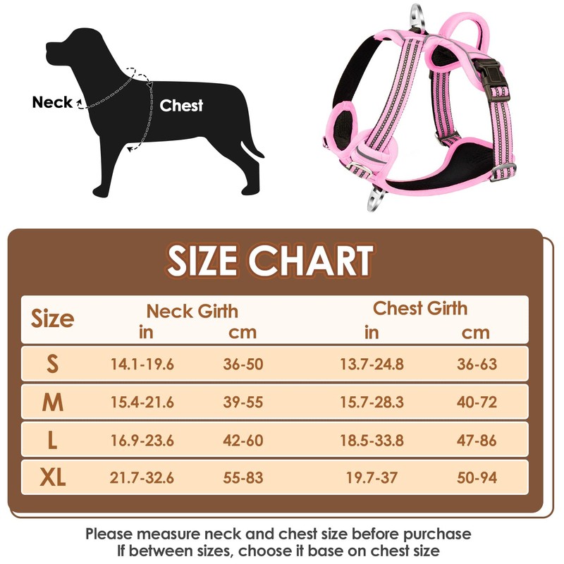 - 【MUCH SAFER & MORE COMFORTABLE】--- The soft padded, top vertical handle is ergonomic, easy to lift, and comfortable to provide extra control when your dog is too active or tends to pull. Well sewn reflective material in the straps won’t crack easily and can durably ensure high visibility and safety when walking at night.