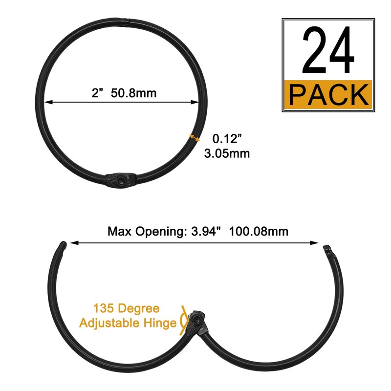 - Wide UsedThe hinged opening design shower rings fit most standard shower curtain rods.Shower curtain rings also known as loose leaf binder rings,book rings,key rings,metal rings for index cards,rings for flash cards,clip rings,curtain rings,can be used for memo filing,scrapbook,binding recipe,photos,sample book,scrapbook,sample holders,contract or file.