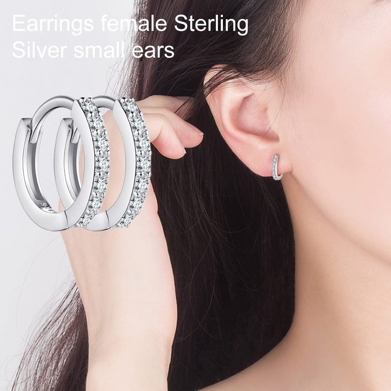 - ◎ Elegant and simple ◎ Small silver hoop earrings, there is a row of tiny zirconia sparkles on the earrings. It is currently the most popular fashion item. Fit man woman boy