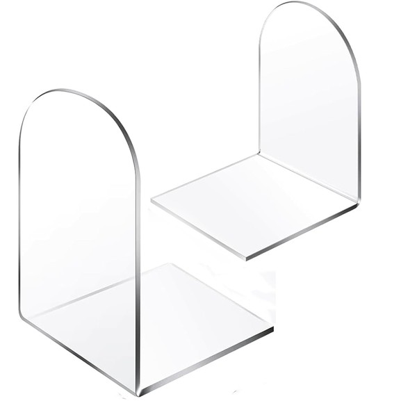Lulonpon 2pcs Clear Acrylic Bookends, Non-Skid Book Ends for Book Shelves, School Library, Desktop Organizer