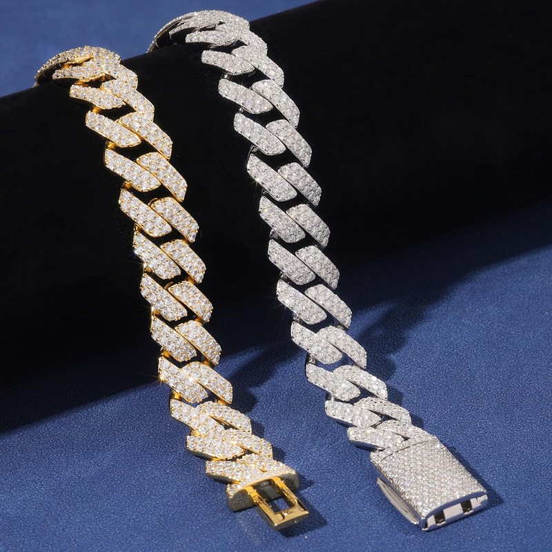 • Multiple sizes available: We offer you a full size of 7 inches and 8 inches bracelet, 18-24 inches necklaces in 2 colors: gold and silver. All necklaces are carefully designed and processed by our team and are strictly inspected before delivery to ensure you receive a good-quality diamond Miami cuban chain.