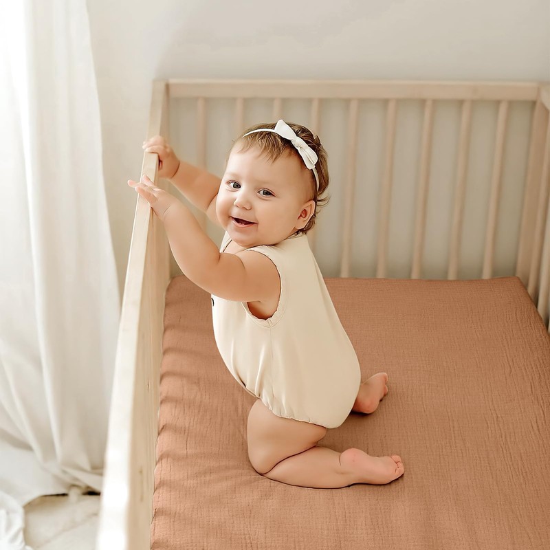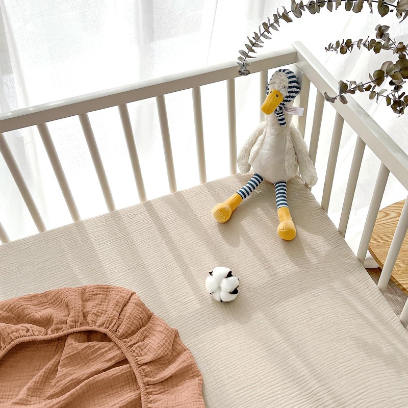 - SOFT AND COMFORTABLE - The crib sheets is made of 100% muslin cotton, super soft, comfortable, and won't irritate your baby's delicate skin. Lightweight, breathable muslin crib sheets stay cool even in warm weather.
