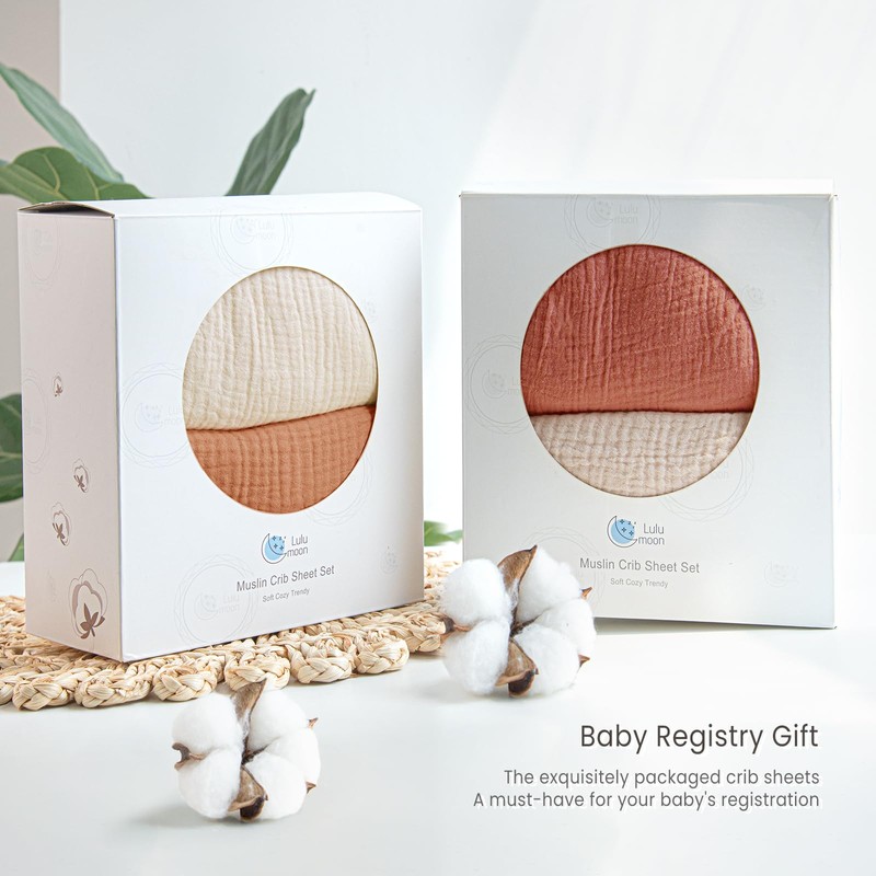 Lulu moon Muslin Crib Sheets - Fitted Crib Mattress Sheets for Boys and Girl - 28"x 52", 2 Pack (Beige & Caramel)