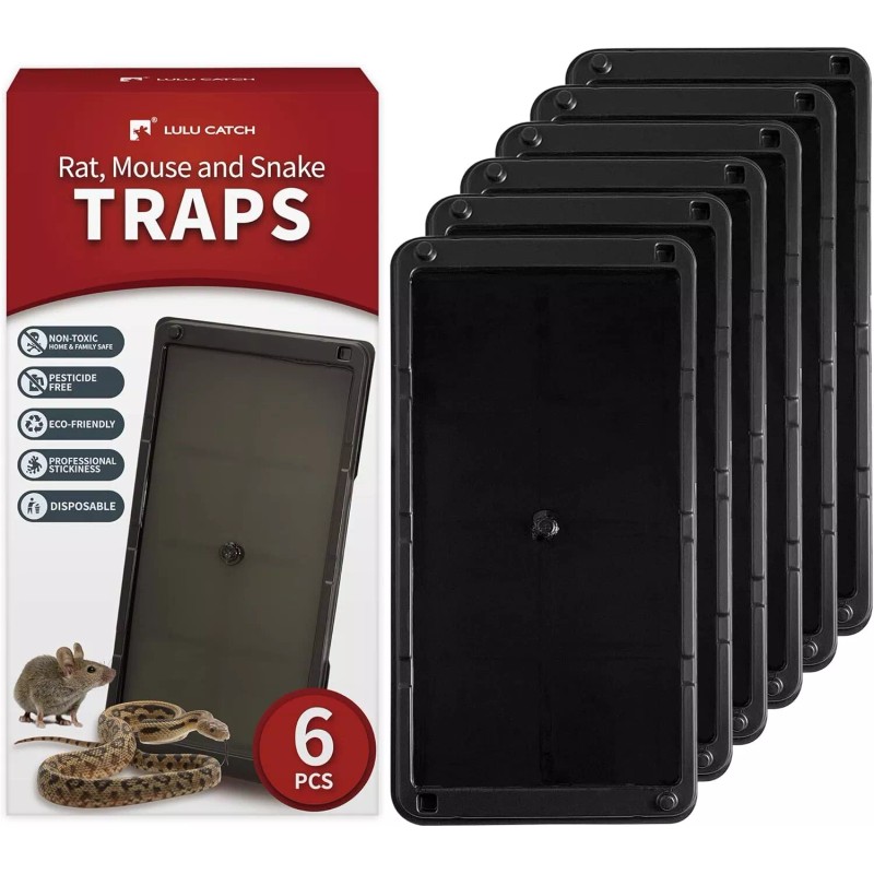 LULUCATCH Super Glue Traps 6 Pack for Mice & Snakes, Larger, Heavier 6 Pack, black