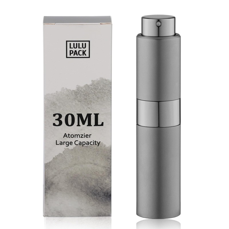 Lulupack Perfume Atomizer Refillable Travel Bottle: Cologne Portable Sprayer for Men - Mini Spray Empty for Refill - 1oz Large Size Grey