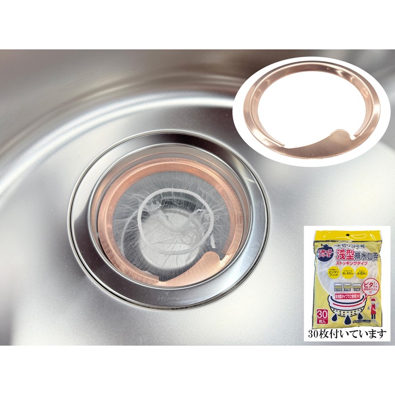 LuLuPaL Copper Net Holder (for Kitchen), Made in Japan, Includes 30 Draining Nets, Drain Outlet, Garbage Receptor, Sink (φ144)
