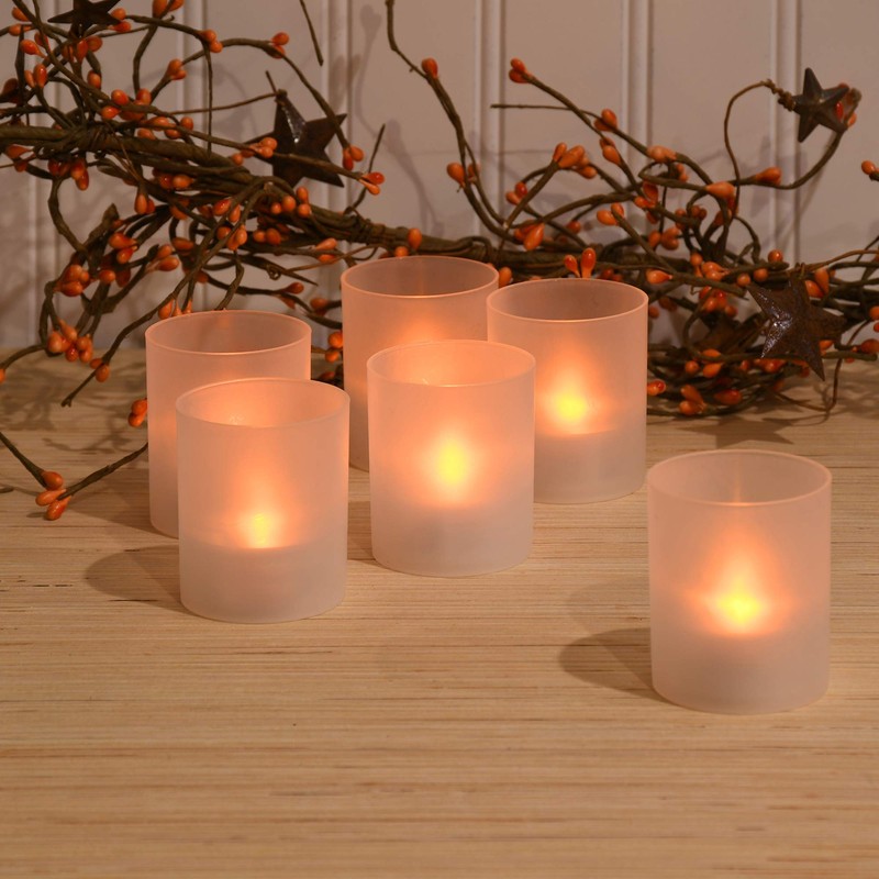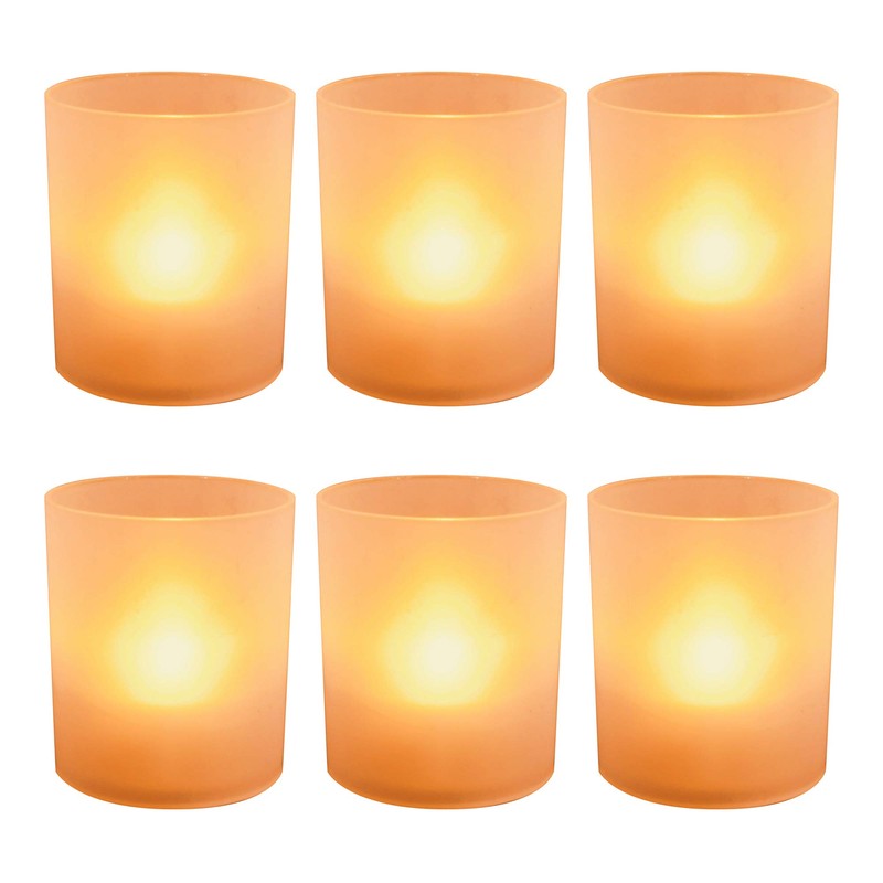 - Frosted Votive Holders: Orange flickering tealight candle cups in frosted votive holders are worry-free and create a beautiful ambiance. Enjoy the illumination of real candles with the LED tealights in without the hazard of fire at the flip of a switch!