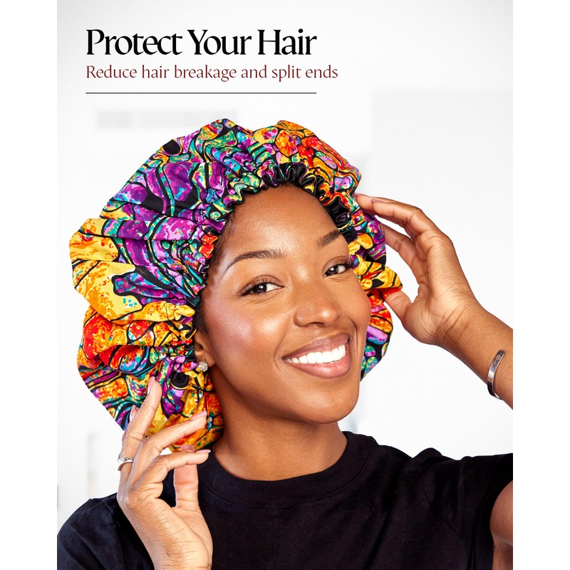 - Reduce Frizz: The smooth satin material on our premium bonnets helps to prevent dryness and frizz, especially beneficial for curly, textured, and natural hair.