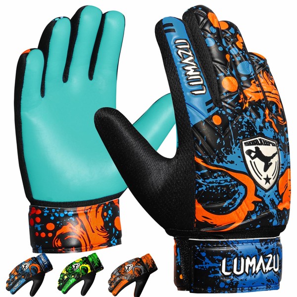 - Comfortable Fit: Kids goal keeper gloves with Fingersave Engineered with a snug and comfortable fit, LUMAZU uses double design strap elasticated wrist with adjustable velcro strap to give your child extra fitting and better dexterity and flexibility, enabling natural hand movements while playing and reduce the risk of spraining your child's wrist