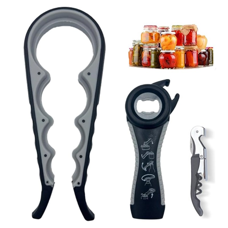 - 【3 en 1 abridor de frascos y botellas】Ocho tamaños de aberturas circulares hacen que el abridor de frascos sea extremadamente conveniente para abrir tapas pequeñas y medianas, no poniendo tensión adicional en la frágil articulación de la mano y los ligamentos!