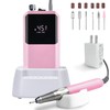 Lumcrissy Professional Nail Drill Machine - 2-in-1 Brushless Motor Nail File, 45000 RPM 2*3500mAh Portable Efile for Acrylic Gel Nails with 6 Bits & ETL-Certified USB Charger for Salon & Home(Pink)