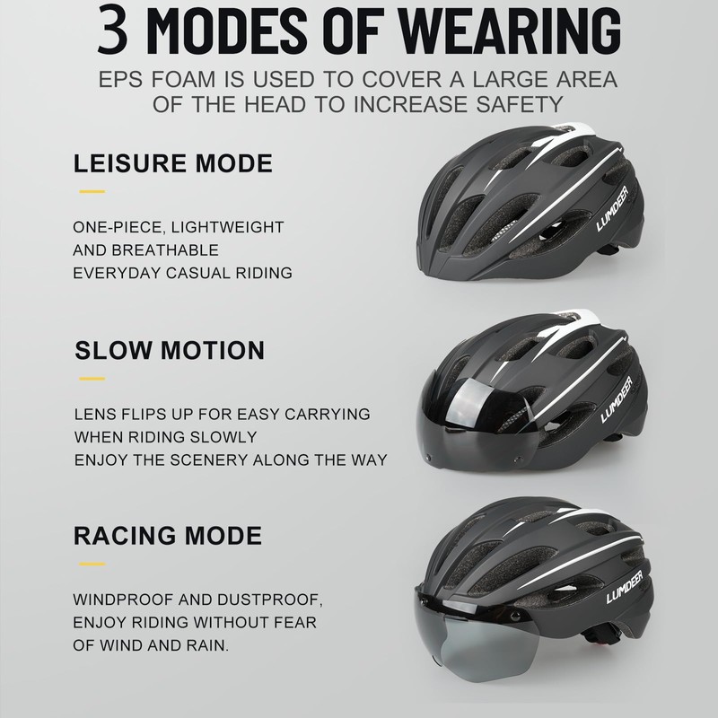 - 【Safety Protection】LUMDEER bike helmet meets US cycling standard. With superior in-molding technology,bicycle helmet made of high-density PC shell and EPS foam is helpful to absorb and decrease the pressure caused by external impact forces,giving you the maximum protection in all directions when road cycling or mountain biking.