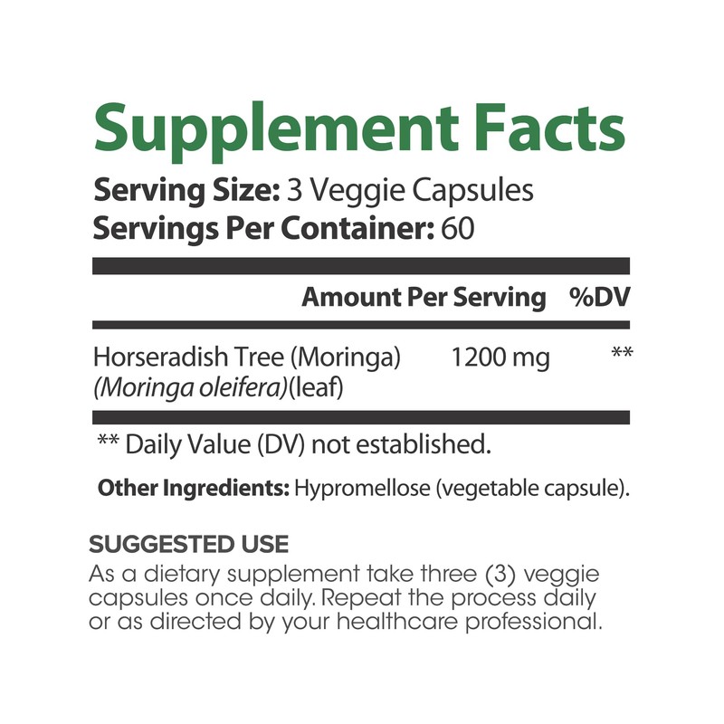 - - Pure Moringa: Each serving contains 1200mg of high-quality moringa.
