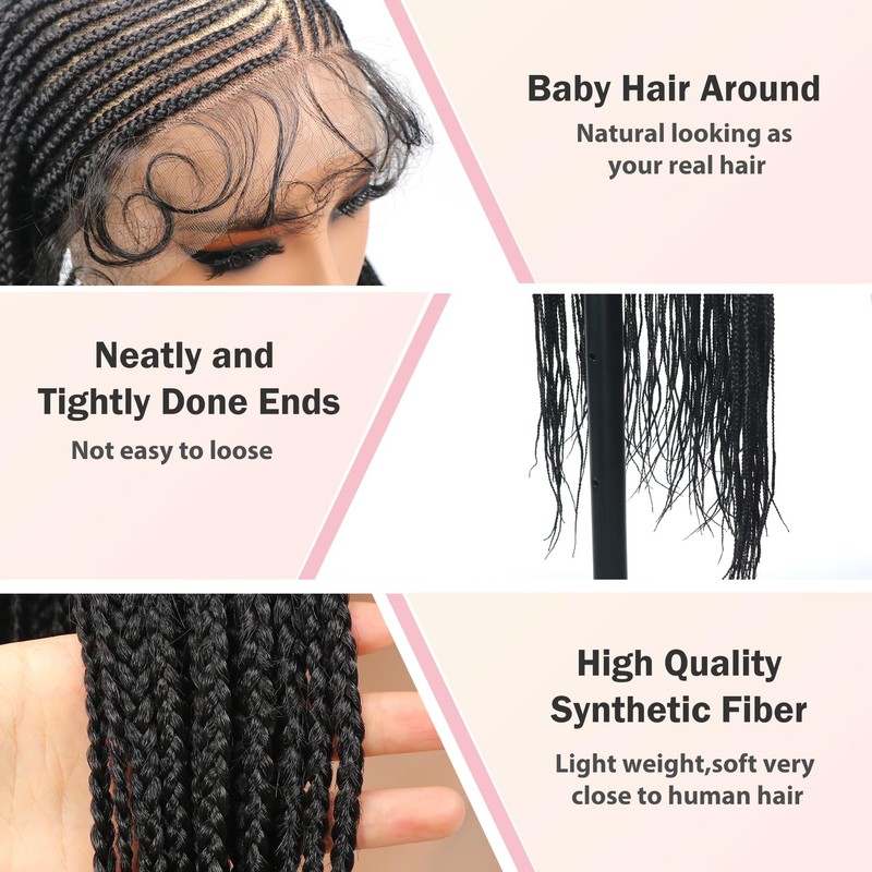 - 【Amazing Look New Fashion】: It is the new style everyone is getting knotless box braided so instead of sitting for hours you can totally just get this Micro Million braids hairstyle and go looks very natural. I would definitely recommend this baided lace frontal wig with baby hair to anyone looking to have this knotless look without the pain and time