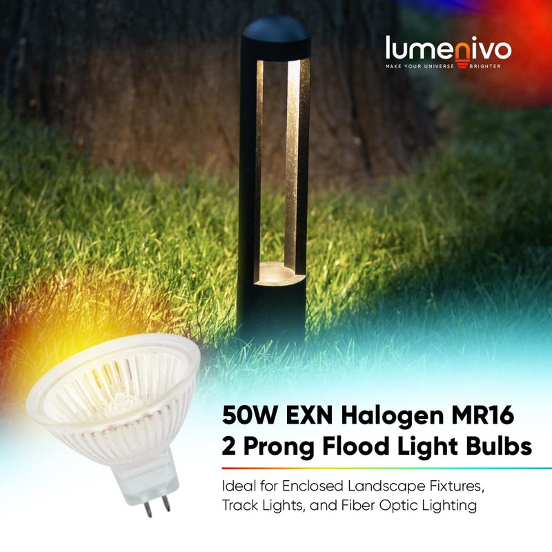 lumenivo EXN Bulb Halogen MR16 50W 2 Prong Flood Light Bulbs Indoor Track Light Halogen Bulbs, Landscape, Fiber Optic - GU5.3 2-Pin Base - 12V - 4 Pack