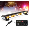 LUMENIX 31 Inch 168 LED Rooftop Strobe Emergency Lights Bar w/Controller Heavy-Duty Magnetic Mount Warning Flashing Traffic Lightbar for Construction Vehicles Tow Work Trucks Snow Plows - White Amber
