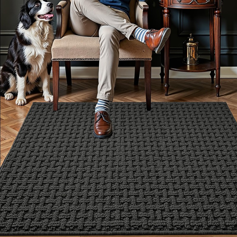 LUMI LUMI Washable Door Mat Indoor Entrance 17x30, Dirt Trapper Front Door Mats with Absorbent Interior and Non-Slip Rubber Backing, Thin Entryway Doormat, Dark Gray