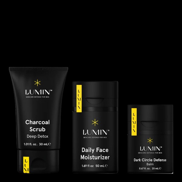 The Lumin Boss Trio is the perfect combination of skincare products to help you achieve a healthy, glowing complexion. What is included in the Lumin Boss Trio? • Lumin Charcoal Scrub Deep Detox 30ml• Lumin Daily Face Moisturizer 50ml• Lumin Dark Circle Defense Balm 20ml What are the features and benefits of the Lumin Boss Trio? Lumin Charcoal Scrub Deep Detox 30ml: This deep detox scrub is formulated with activated charcoal to help draw out impurities and toxins from the skin. It also helps to reduce the appearance of pores and blackheads, leaving your skin feeling refreshed and deeply cleansed.Lumin Daily Face Moisturizer 50ml: This lightweight moisturizer is formulated with natural ingredients to help nourish and hydrate the skin. It helps to reduce the appearance of wrinkles and fine lines, leaving your skin feeling soft and smooth.Lumin Dark Circle Defense Balm 20ml: This balm is formulated with natural ingredients to help reduce the appearance of dark circles and puffiness around the eyes. It helps to brighten and hydrate the delicate skin around the eyes, leaving it looking refreshed and revitalized. Who is the Lumin Boss Trio for? The Lumin Boss Trio is perfect for anyone looking to achieve a healthy, glowing complexion.