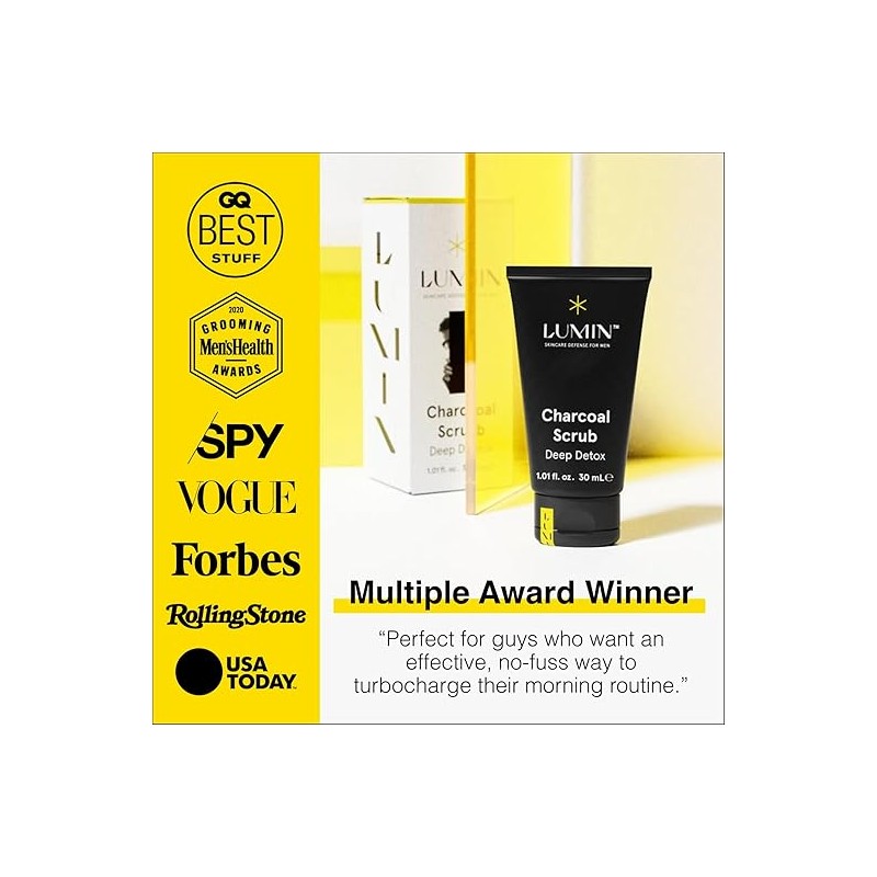 Lumin Exfoliante Facial de Carbón activado para hombres - Exfoliating Rub | Evitar una piel opaca, reducir la sequedad, minimizar los poros, manchas oscuras, puntos negros y la irritación despues del afeitado, 1oz (30 ml)
