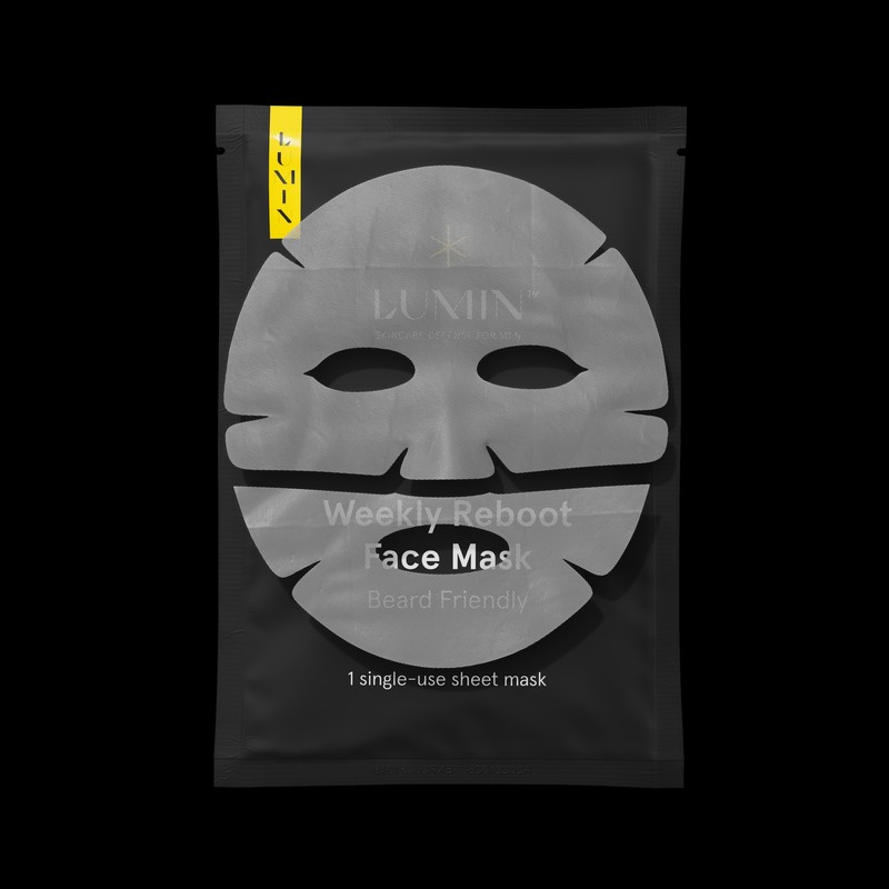 The Lumin Weekly Reboot Face Mask Beard Friendly (10 Pack) is a weekly face mask designed to help keep your skin looking and feeling refreshed.