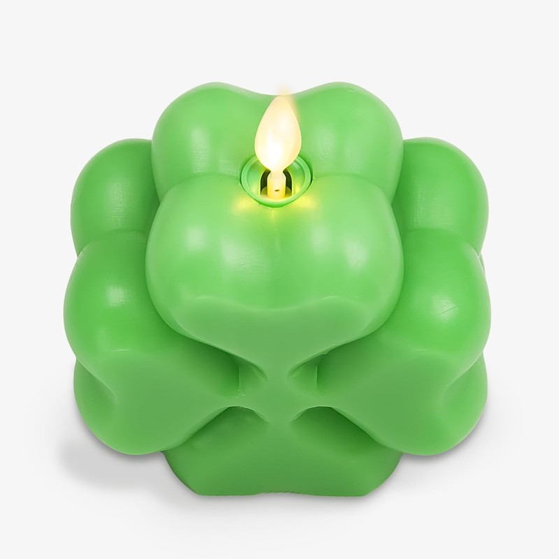 The Luminara Classic Green 4-Leaf Clover candle is designed to look just like a real wick open-flame candle. The body is crafted from hand-poured 100% paraffin wax around the electric core. The texture is just as smooth and realistic as it looks, and creates a lovely ambiance in any room. It's perfect for your St. Patrick's Day display on the mantelpiece, bookshelf, or dining table centerpiece. Or, display year round to showcase your Irish pride!