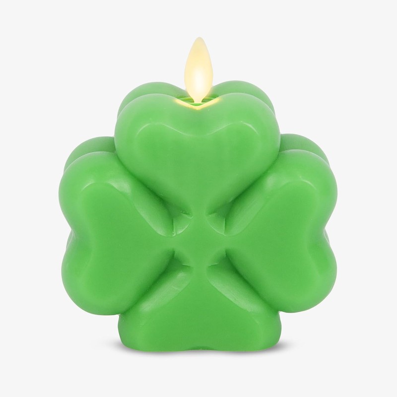 Luminara 4-Leaf Clover Candle - Flickering Real-Flame Technology- Flameless LED- Remote Ready- Classic Green St. Patrick's Day Shamrock- 3.9" x 4.3"