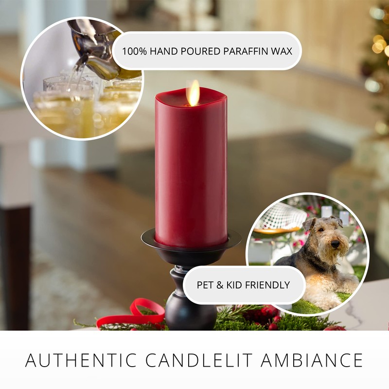 Luminara Flameless LED Candle, Moving Flame Pillar, Melted Edge, Real Wax, Remote Ready, Battery Operated, Unscented - Burgundy (6.5-inch)