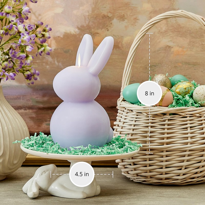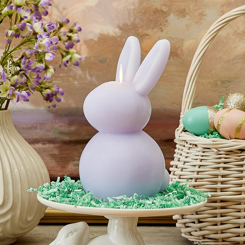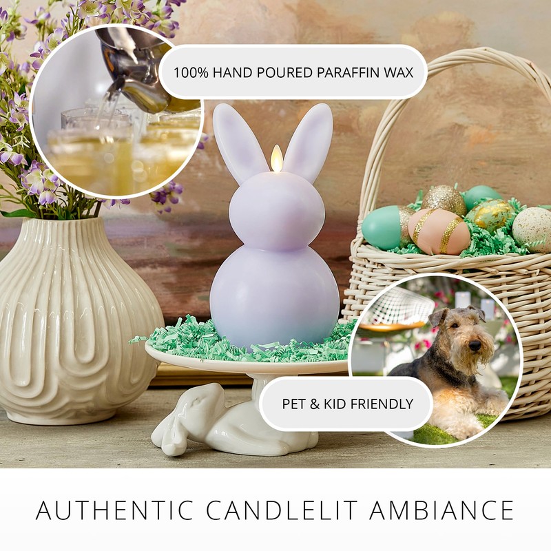 Luminara Luminara Easter Bunny Candle- Gentle Lavender 4.8" x 8"- Flameless Real-Flame Holiday-Inspired Decor- AA Batteries- Flickering LED Flame