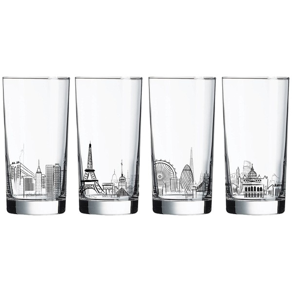 Luminarc 4 Piece Skylines 15.25 oz Assorted Decorated Coolers, Clear