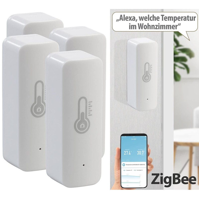 - 4 Temperatur- und Luftfeuchte-Sensoren inklusive deutscher Anleitung. Smart Home Thermometer ZigBee - Außerdem relevant oder passend zu: Infrarotheizung, Luftbefeuchter, Wetterstation, Entfeuchter, Ultraschall, Luftkühler, Heizlüfter, Thermostat, Messgerät, Wellness, Automat, Baby