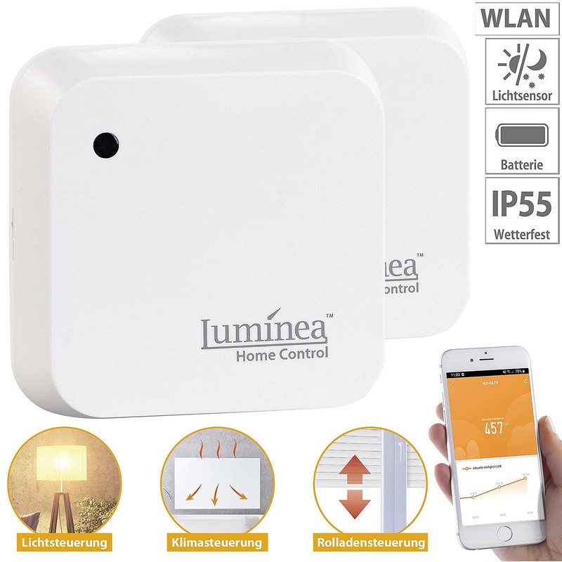 Luminea Home Control Solar Sensor Socket: Set of 2 Weatherproof WLAN Light & Twilight Sensors with App, IP55 (Light Sensor Smart, WiFi Light Sensor, Roller Shutter Control)