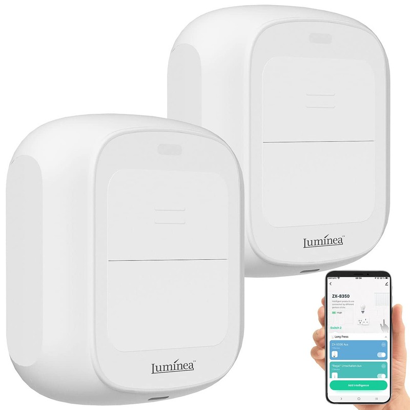 Luminea Home Control Wireless Switch: Set of 2 Smart WiFi Remote Control with 2 Buttons, Light & Scenes Control (Smart Light Switch, Smart Home Button, Socket Switch)