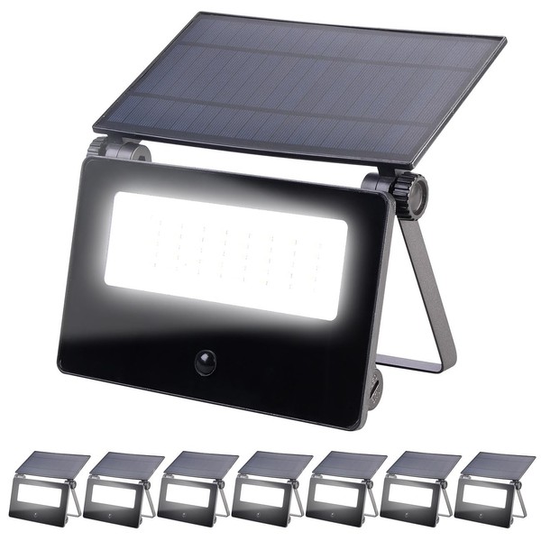 Luminea Solar LED Outdoor Spotlights: Set of 8 Solar LED Wall Floodlights, Motion Sensor, 1300 lm, 2 x 1800 mAh (Solar Floodlight with Twilight Sensor, Spotlight with Solar Panel)