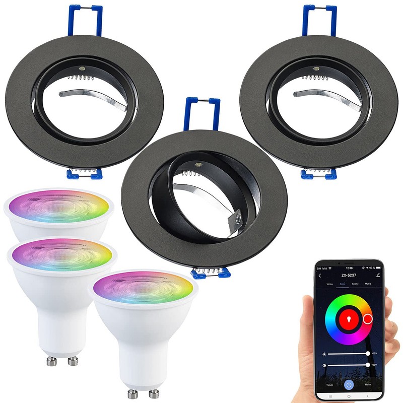 Luminea Spot Light Sockets: Set of 3 Aluminium Recessed Spotlight Frames Black with ZigBee LED Spotlights (Socket for Recessed Light, Lamp Base)