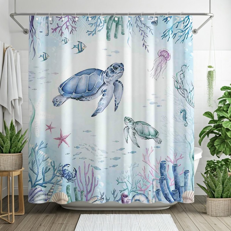 Luminora Underwater Sea Turtles Shower Curtain for Bathroom Blue Ocean Tropical Beach Coastal Seaweed Fish Decorations Sets with 12 Hooks Waterproof Polyester 72" x 72"