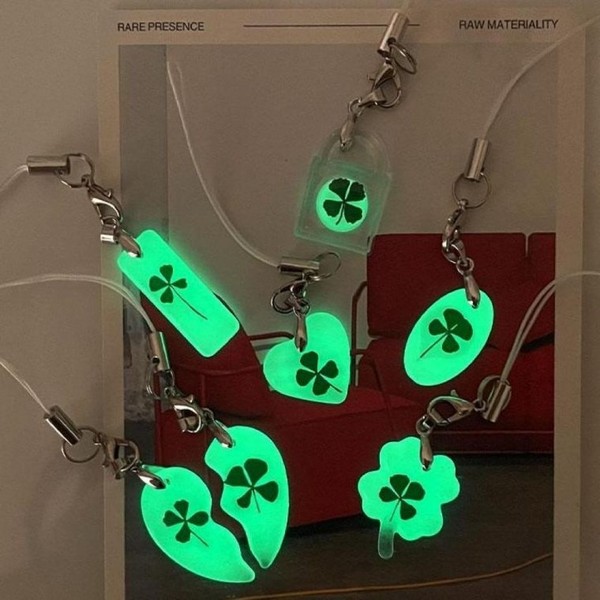 Luminous Four-Leaf Clover Lucky Keyring for Exams & Mobile Phones Small Heart (D-Ring)