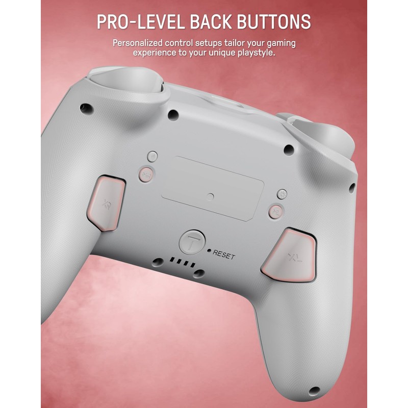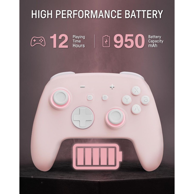 • Hidden-til-lit Display: It is one of our solutions to achieve this enhanced gaming experience. The surface decoration of switch controller design is seamlessly harmonized with lighting effects. When the LED is not active, it lies quietly as a pure pink controller. And when it turns on, the hidden pattern will light up your amazing gaming night.