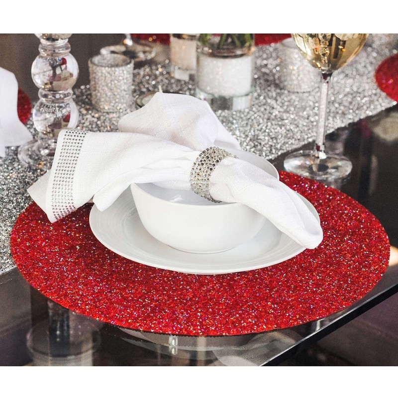 - FEATURES: Sparkles Home Luminousb Round Placemat is created from thousands of tiny rhinestones that are melted into a rubberized material to create our Luminous Collection. This glittering piece makes an absolutely fabulous and eye-catching table setting. It protects your table from stains and scratching. A formal sparkling placemat decoration to your dining tables and tea tables.