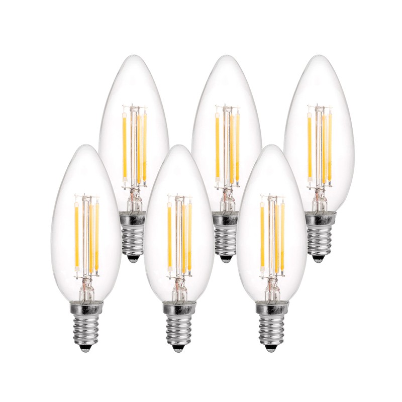 Luminus 4.5W LED 500 Lumens B10 E12 Base Dimmable Filament Bulb 5000K, Clear, 6 Count (Pack of 1) (PLF6505)