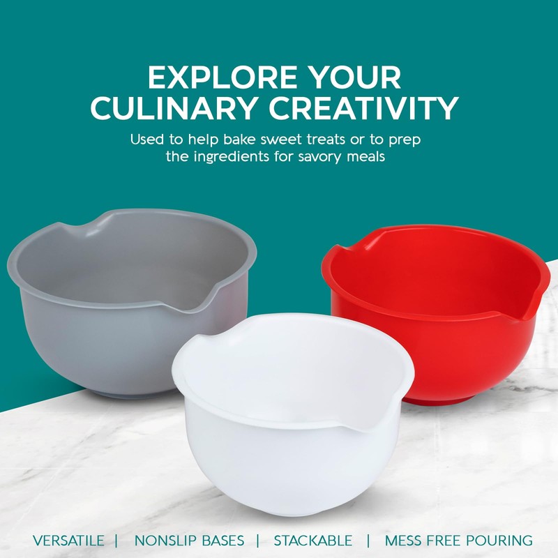 Luminuxe 3 Piece Plastic Mixing Bowl Set with Non-Slip Base – 1.5L, 2L, 2.5L