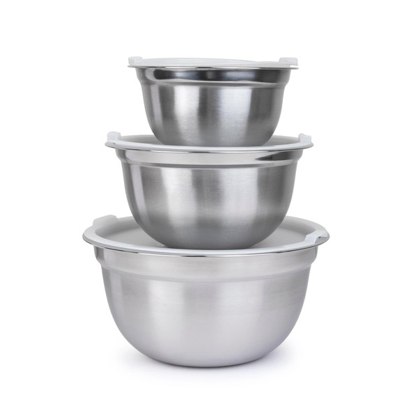 Luminuxe 3-Piece Stainless Steel Mixing Bowl Set with Lids – Durable Bowls Dishwasher Safe, Silver