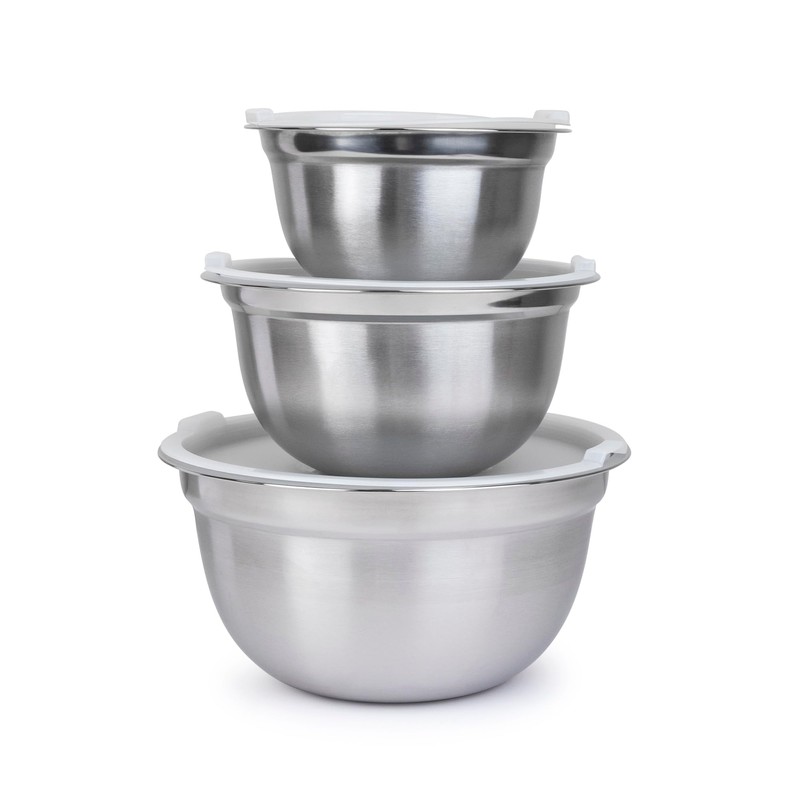 - THREE BOWLS INCLUDED: 1.5 Qt, 2.6 Qt, and 4.2 Qt sizes for versatile mixing needs.