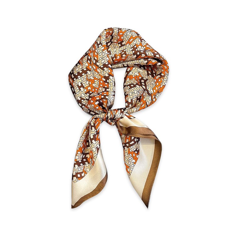 LumiSyne Women's Square Silk Scarf 70 x 70 cm Retro Printed Geometric Chain Monogram Pattern Lightweight Satin Square Scarf Multifunctional Neckerchief Headscarf Bandana Headpiece Headband, Orange