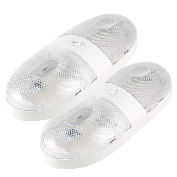 Lumitronics RV 12V Double LED Ceiling Dome Light, On/Off Switch, Removable Lenses (Pack of 2)